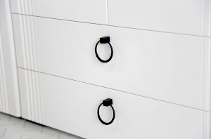 - Нержавеющие металлические ручки придают шкафу дополнительную прочность и стильный акцент.