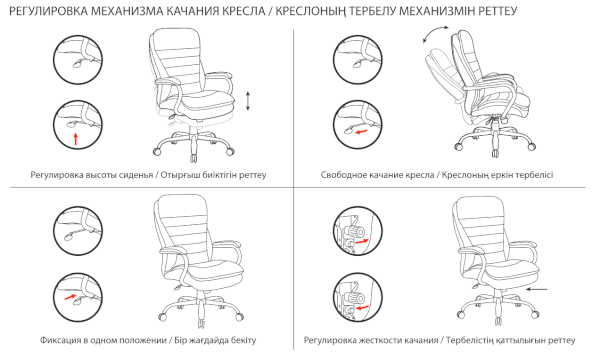 Тип механизма кресла: "топ-ган" качание с регулировкой под вес и фиксацией в 1 положении