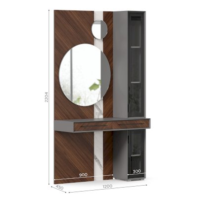 • Над столом 2 круглых зеркала, закрепленные на панели, диаметр зеркал 800 мм и 250 мм