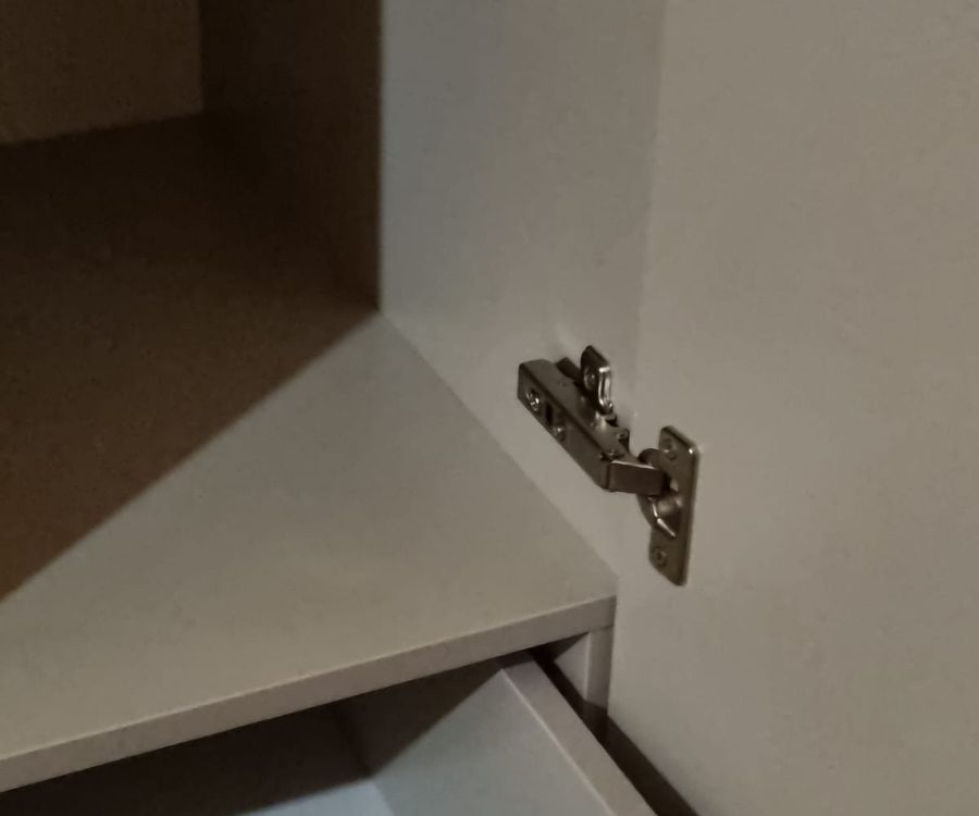 положили 1 амортизатор силиконовый, чтоб дверца не хлопала, а дверцы три. Еще трещина на одной из полок.