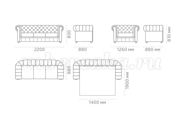 Размеры дивана : 2200*880*800 мм