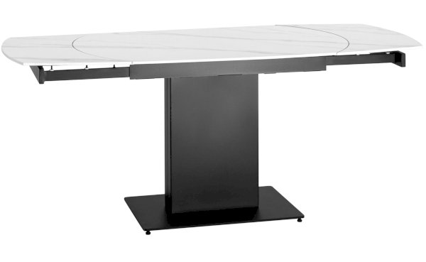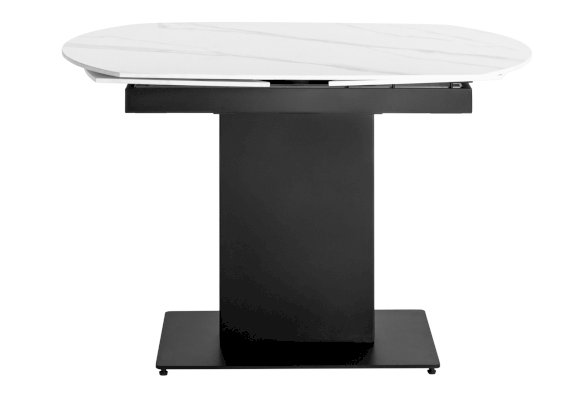 Лаконичный обеденный стол Хлоя с полуавтоматическим раздвижным механизмом. Столешница выполнена из цельной керамики с рисунком мрамора. Прочный и долговечный материал выдерживает перепады температуры и механические воздействия. Стол оснащён простым и элегантным раздвижным механизмом, достаточно повернуть центральную часть на 180 градусов и зафиксировать между боковыми панелями. Таким образом, при необходимости, можно увеличить полезную площадь стола на 60 см. Металлический каркас с монолитной ножкой надежно удерживает всю конструкцию. Основание каркаса оснащено заглушками, которые не позволяют металлическим частям соприкасаться с полом и портить покрытие при перемещении.