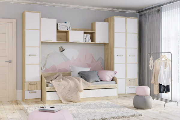 Шкаф для белья ФАНК не займет много места в детской комнате. Компактная, но очень вместительная модель шкафа с четырьмя полками, позволит разместить вещи, игрушки и книги. Выдвижные ящики оснащены шариковыми направляющими полного выдвижения и равномерно распределяют вес содержимого, обеспечивая плавный бесшумный ход ящика. Классические глухие фасады надежно защитят содержимое шкафа от влаги и пыли.