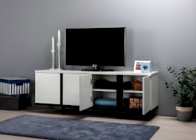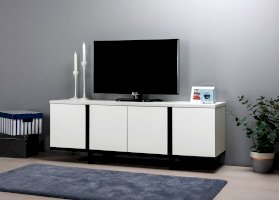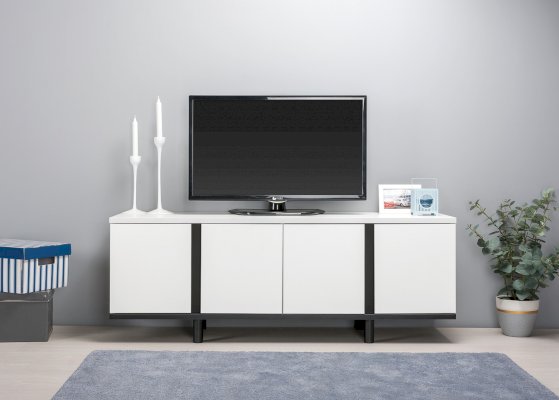 Это графичное сочетание, которое всегда на пике моды. Монохромный декор тумбы ТВ легко впишется в самый сложный интерьер. При изготовлении используются качественные ЛДСП толщиной 22 мм и 16 мм, кромка толщиной 2 мм и 1 мм. Такие материалы придают солидность внешнему виду, обеспечивают надежную основу и более долгий срок службы. В столешнице имеется вырез под провода для подключения мультимедиа техники, а регулируемые опоры легко компенсируют неровности пола.