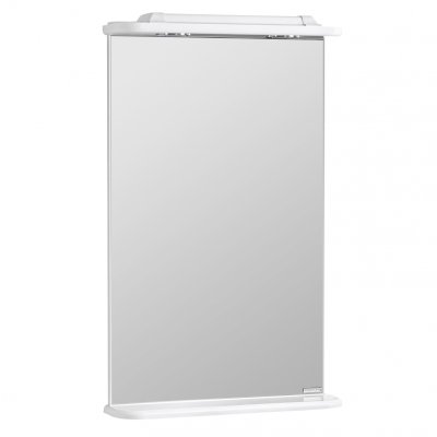Зеркало покрыто влагостойким защитным слоем и не будет запотевать. Также в комплекте имеется галогеновый светильник, закрепленный на верхней полке зеркала, которые отлично освещают всё пространство перед ним, даже если основной свет в ванной не горит.