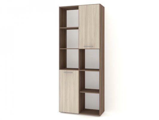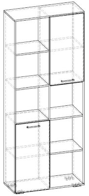 Применение задней стенки из ЛДСП (в ячейках с фасадами) позволяет использовать данный стеллаж для зонирования пространства (чтобы предотвратить опрокидывание, необходимо обеспечить крепление стеллажа к стене).
