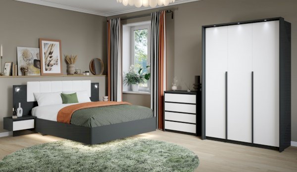 «Мишель» – это современная кровать в актуальных природных цветах с оригинальной конструкцией основания, которое в сочетании с подсветкой создает «эффект парения». Накладные светильники в комбинированном изголовье и подсветка по его периметру дают дополнительное освещение в ночное время, а мягкая накладка с вертикальной отстрочкой комфортно поддерживает спину во время отдыха.