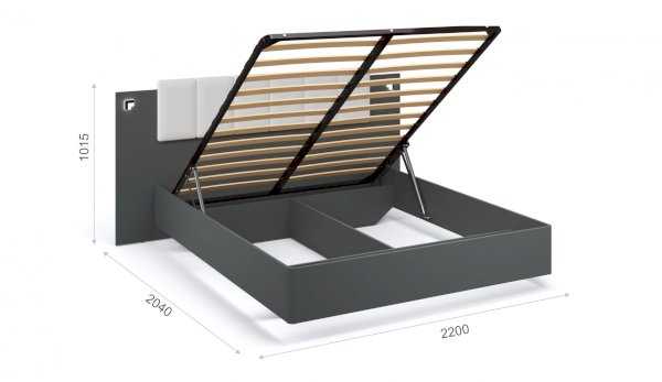 • Кровать поставляется с ортопедическим основанием и подъемным механизмом