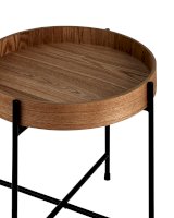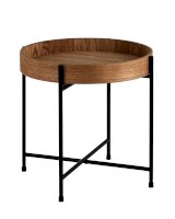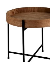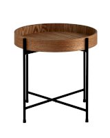 Лаконичный журнальный столик Стар. Круглая столешница выполнена из МДФ и покрыта шпоном из ясеня. Высокие бортики по краям предотвращают падение предметов со столика и добавляют удобства при использовании. Металлический каркас в черном цвете выдерживает нагрузку до 50 кг. Столик станет практичным дополнением интерьера спальни или прихожей.