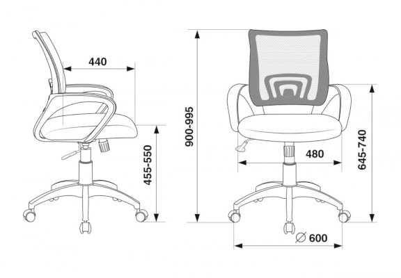 Высота с подлокотниками: 635-730
