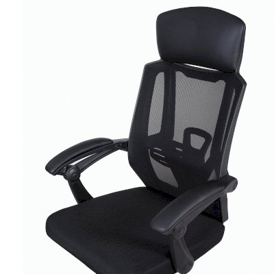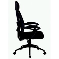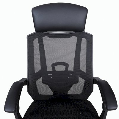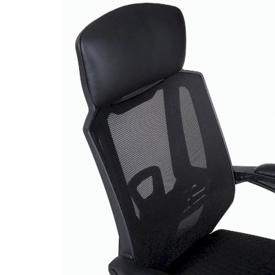 Обивка спинки выполнена из прочной сетки, высокий подголовник обит экокожей - высокотехнологичный материал из пористого полиуретана на хлопковой основе.