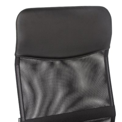 Спинка кресла выполнена из прочного сетчатого акрила. Материал обладает высокой воздухопроницаемостью, легко чистится, способен подстраиваться под физиологические изгибы спины, при этом сохраняет форму и не растягивается. Верхняя, наиболее подверженная износу, часть спинки изготовлена из экокожи. Помимо этого в области поясницы предусмотрена специальная вставка из эластичной ленты для дополнительной поддержки спины.