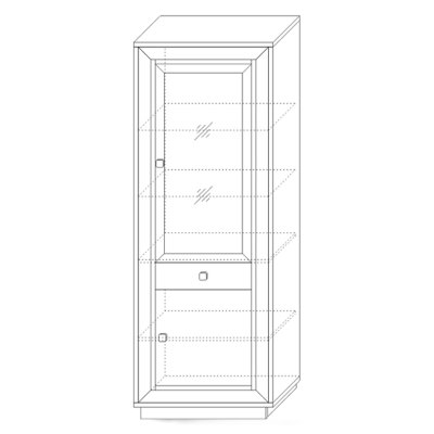 В центральной части расположен выдвижной ящик, в котором вы сможете хранить различные мелочи или аксессуары. Отделение с глухой дверкой разделено полкой для вашего удобства. Витрина оформлена стеклодверью в рамочном профиле МДФ и стеклополкой с прозрачным стеклом толщиной 6 мм.