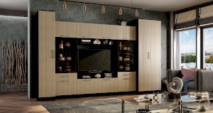 Организовать хранение вещей в комнате или гостиной можно с помощью пенала Фиеста. Модель представляет собой пять глубоких полок, спрятанных за распашной дверцей светлого цвета лоредо. Корпус изделия выполнен из ЛДСП в цвете венге. Фасад дополнен удобной удлинённой ручкой.