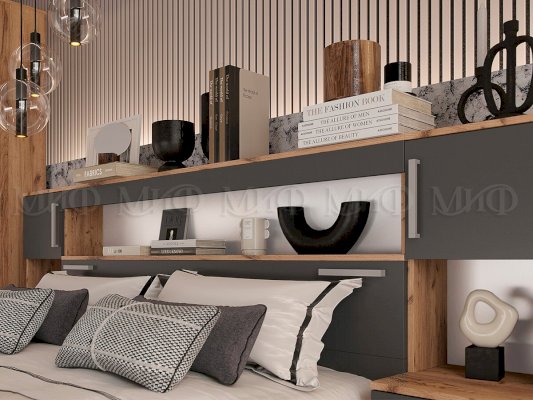 Модульная спальня Бася Графит/Дуб крафт (Миф)