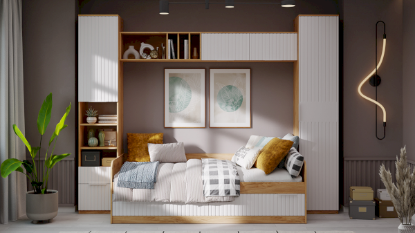 Цвет бежевый / дуб (сонома, молочный, феррара) / серый
