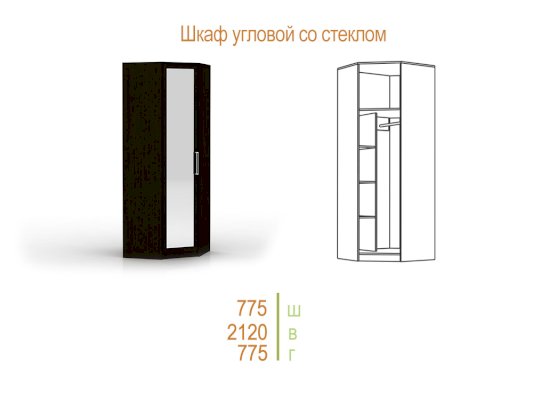 Шкаф угловой со стеклянной дверью